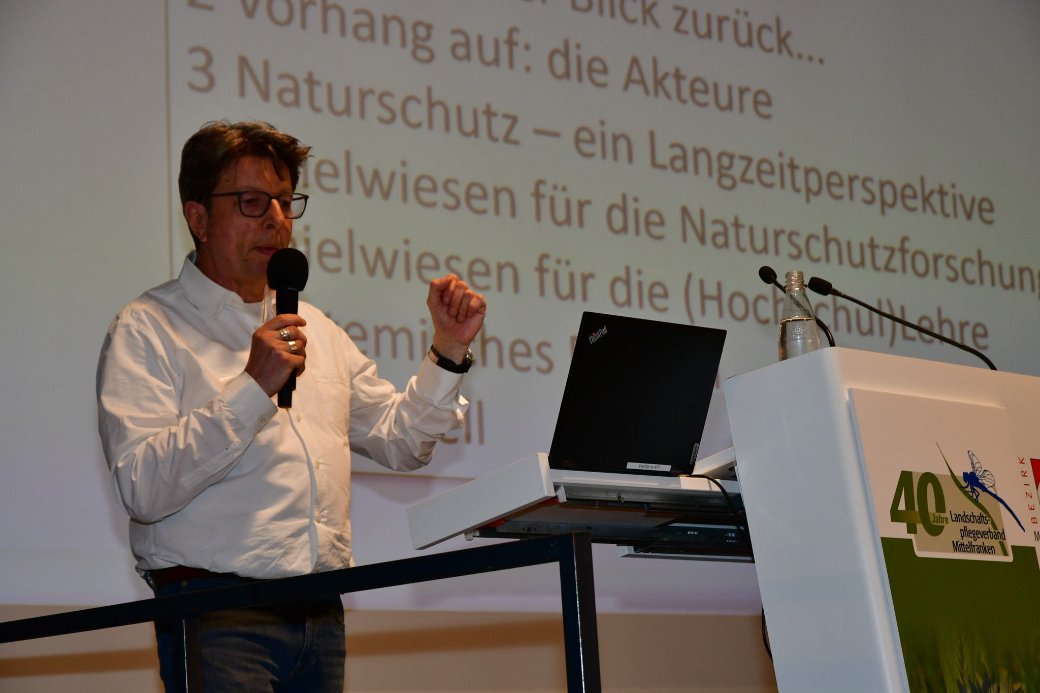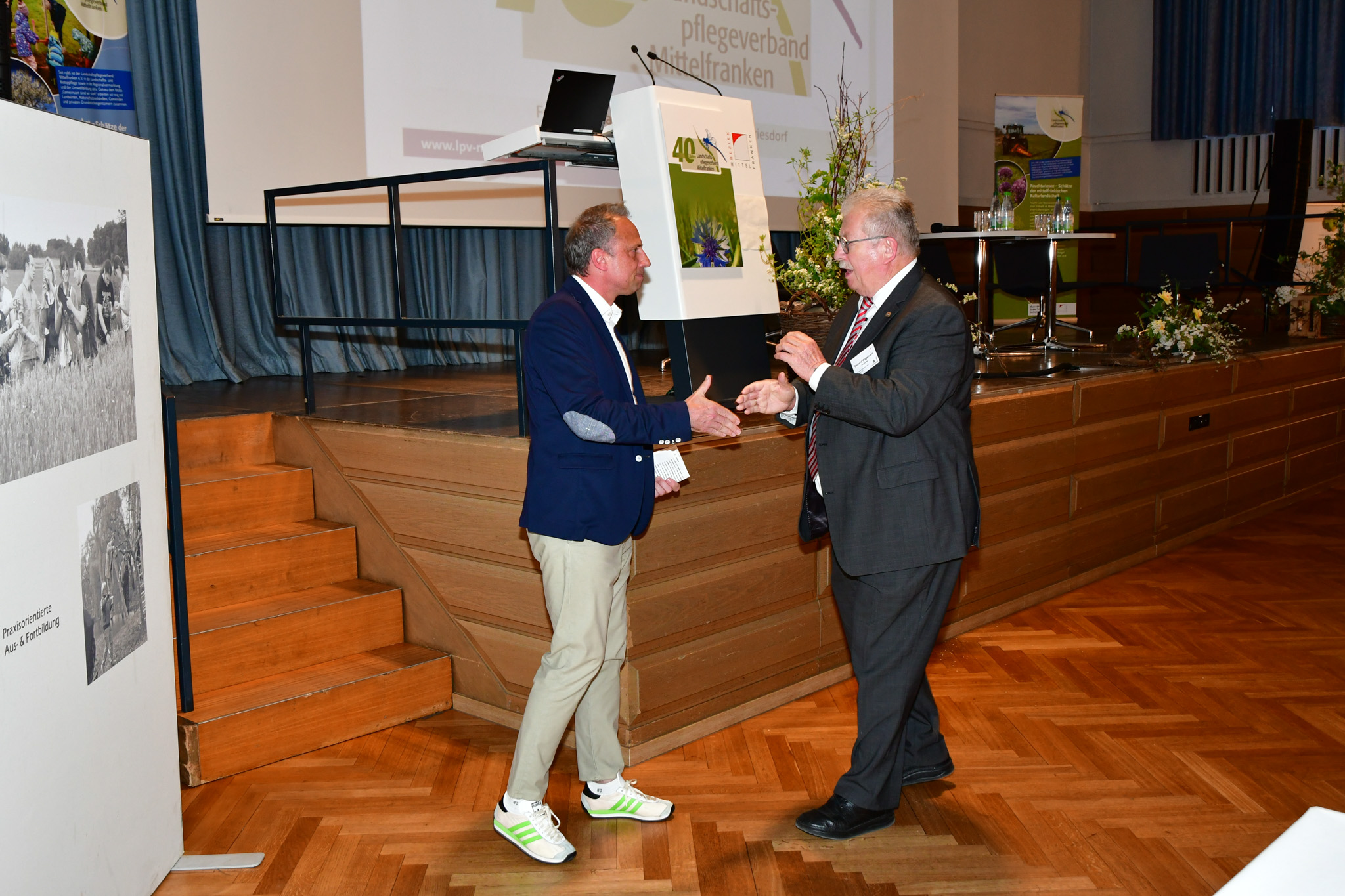 Das Programm des Jubiläums machte zugleich sichtbar, wie breit der LPV Mittelfranken heute aufgestellt ist: Nach den Grußworten folgte ein Rückblick auf 40 Jahre Verbandsgeschichte mit Beiträgen von Rosalinde Göppel, Sibylle Tschunko und Klaus Fackler. Es schlossen sich die Festrede von Staatsminister Thorsten Glauber, eine prominent besetzte Podiumsdiskussion unter Moderation von Wolfram Weltzer sowie der Fachvortrag von Dr. Jürgen Böhmer an. Der Austausch beim anschließenden Netzwerken zeigte: Der LPV Mittelfranken ist nicht nur Teil einer beeindruckenden Geschichte, sondern auch ein wichtiger Impulsgeber für die Zukunft der Landschaftspflege.