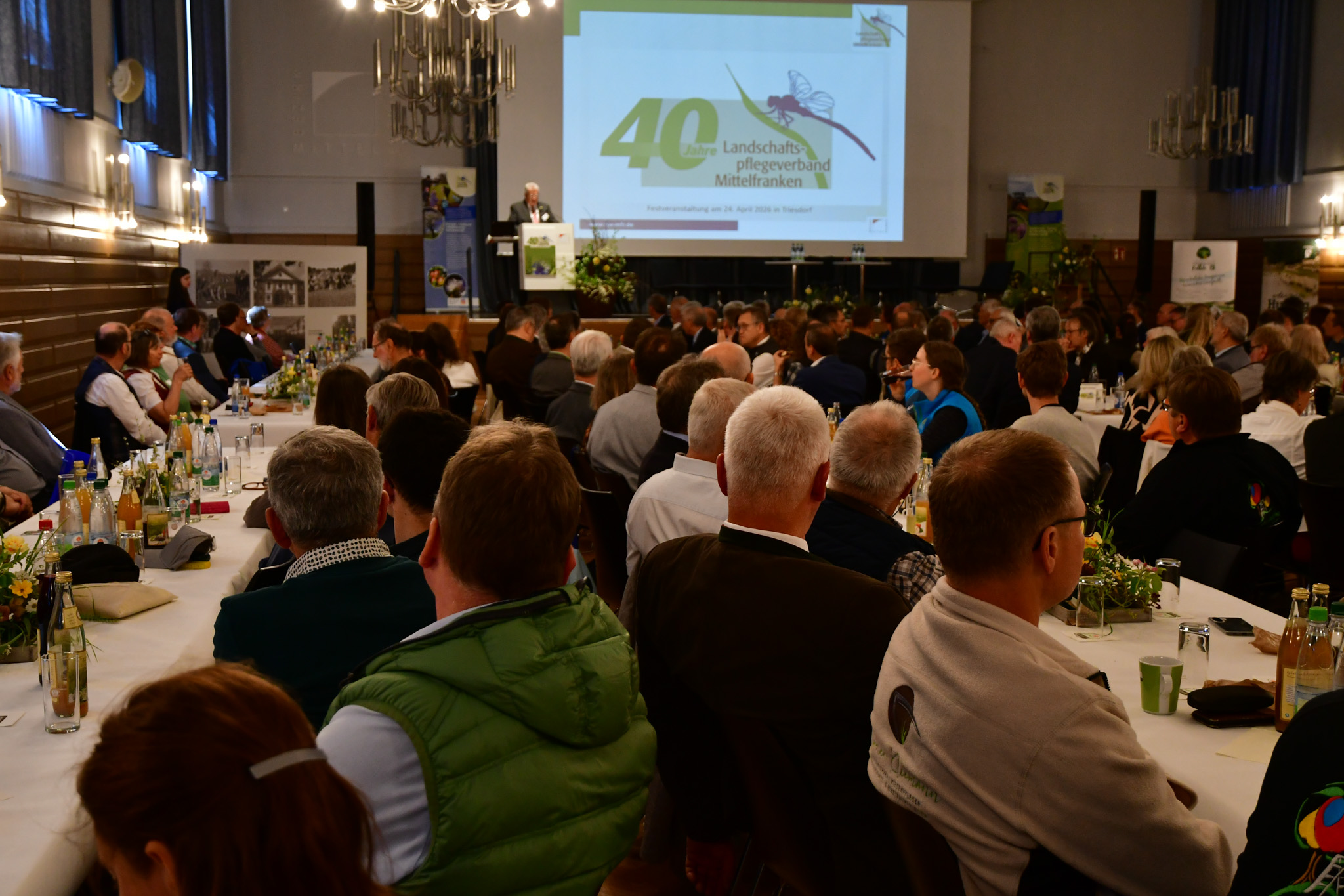 Mit einem Festakt im Alten Reithaus in Triesdorf hat der Landschaftspflegeverband Mittelfranken am 24. April 2026 sein 40-jähriges Bestehen gefeiert. Fast 300 Gäste aus Politik, Landwirtschaft, Naturschutz, Verwaltung, Praxis und Wissenschaft kamen zusammen, um auf vier Jahrzehnte kooperative Landschaftspflege zurückzublicken und gemeinsam nach vorn zu schauen. Der offizielle Rahmen des Jubiläums reichte von Exkursion und Empfang über Grußworte, Rückblicke und Festrede bis hin zu einer Podiumsdiskussion zur Zukunft der Landschaftspflege und einem Fachvortrag zur Verbindung von Land, Natur und Forschung.