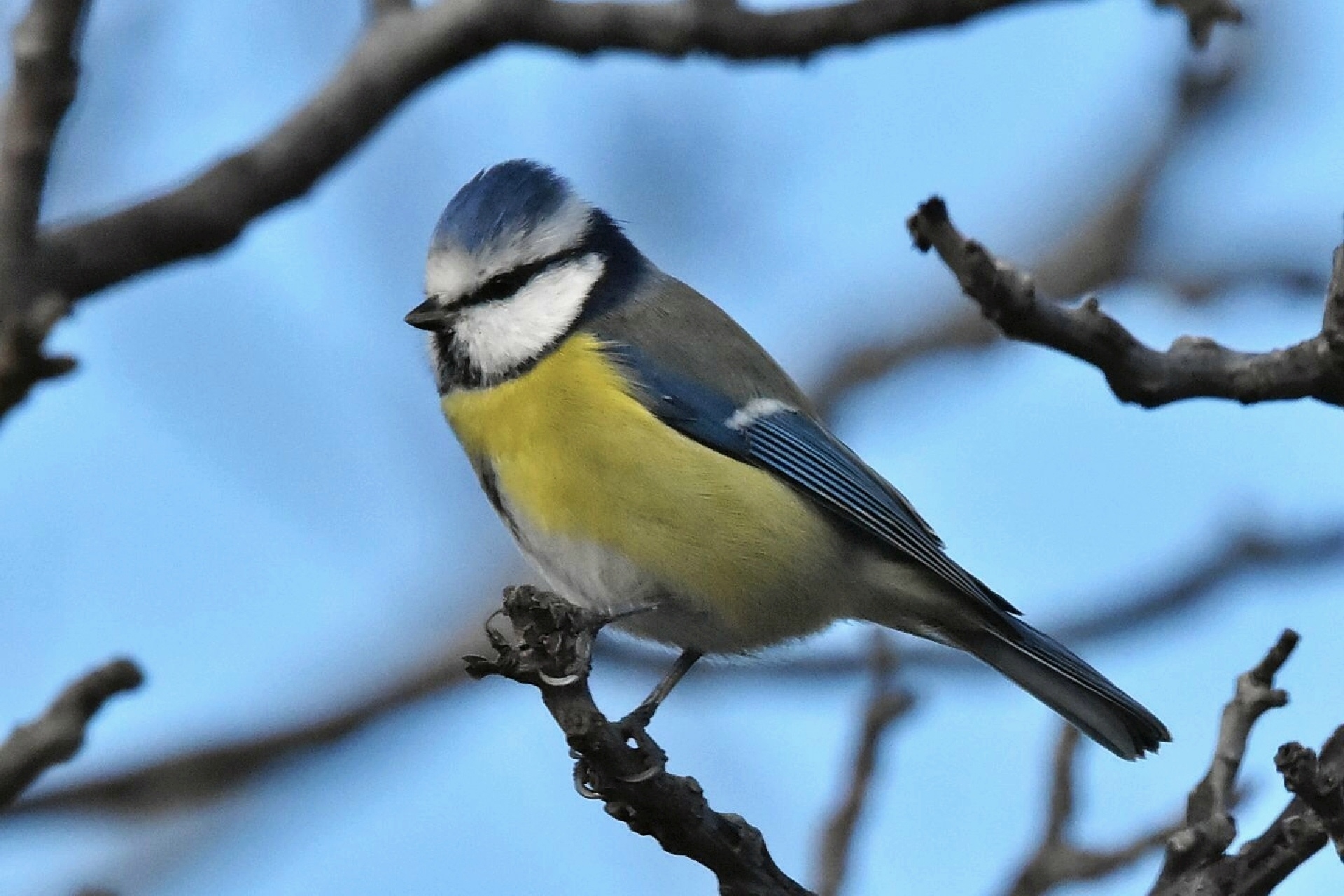 Die Blaumeise liebt die Knospen, Blüten und Früchte der Obstbäume. Fröhlich turnt sie dabei in der Baumkrone herum und brütet auch gern in vorhandenen Höhlen.